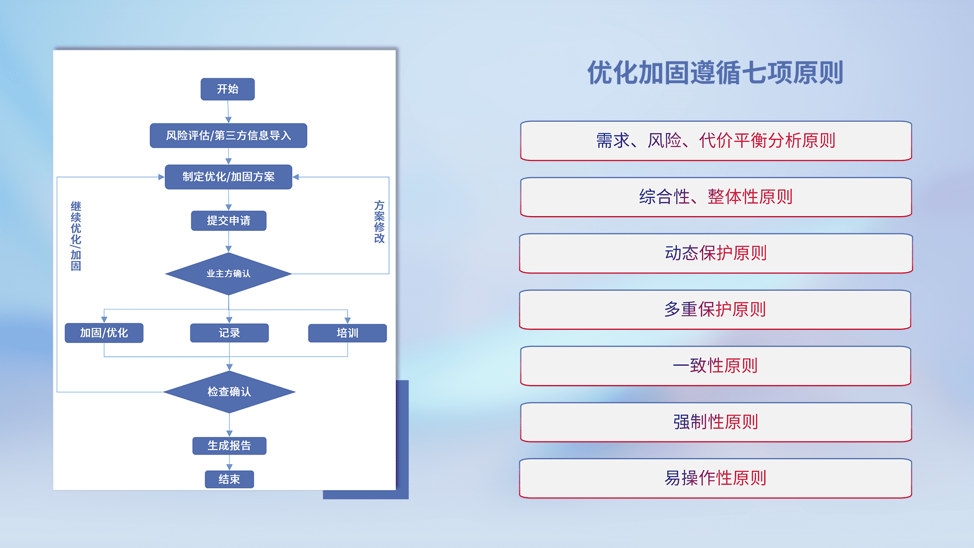最大程度利用现有资产,,,,对评估发现的问题进行封堵与整改,,防止漏洞被利用,,提升整体网络安全性,,,,为客户带来高标准的优化加固服务。。。。